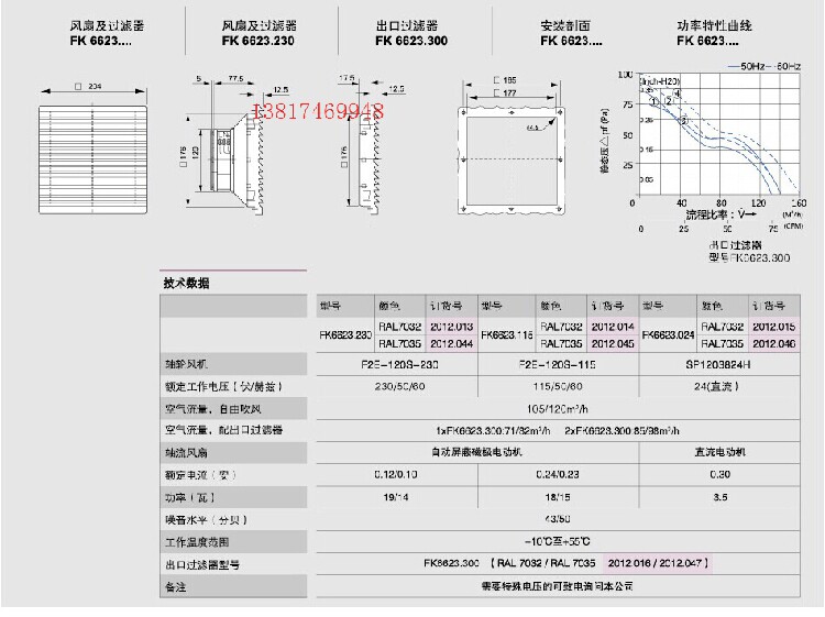 LEIPOLE Rep Electric cabinet fan and filter FK6623 024 DC24V 204X204 -Taobao