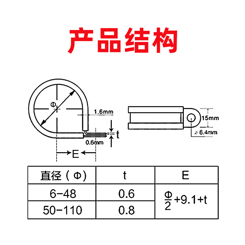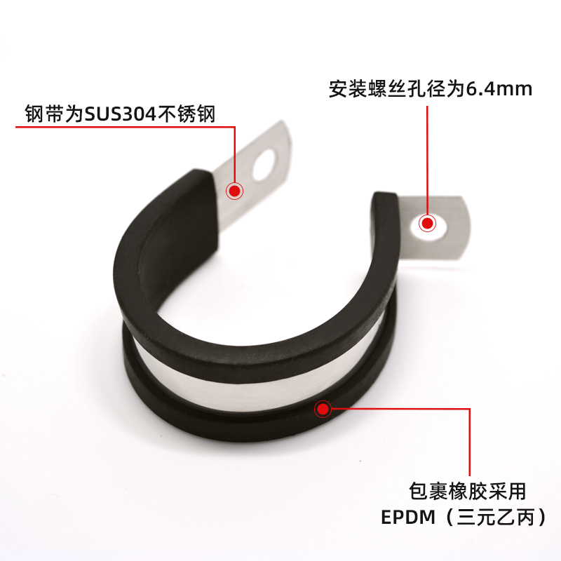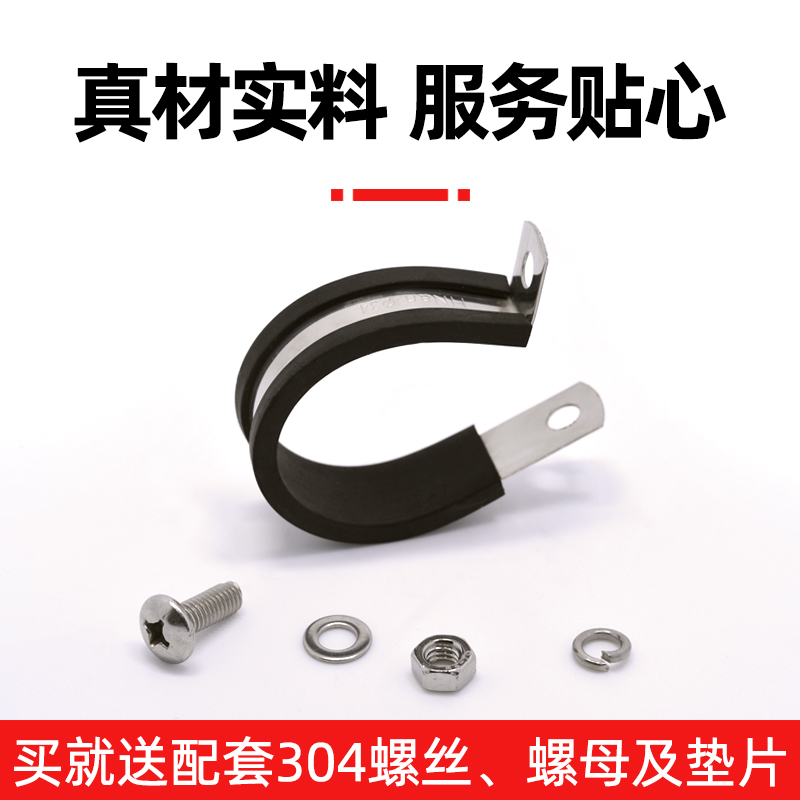 Huinan 304 Stainless Steel Dalian Rubber Strip Throat Hoop Water Pipe Clamp Hoop R-shaped Pipe Clamp Wire Nail Shock Absorbing Pipe Clamp