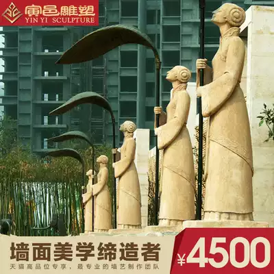 Artificial sandstone screen decoration relief round carving large sculpture three-dimensional porch sandstone background wall Phoenix female