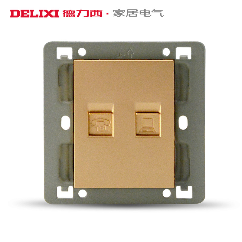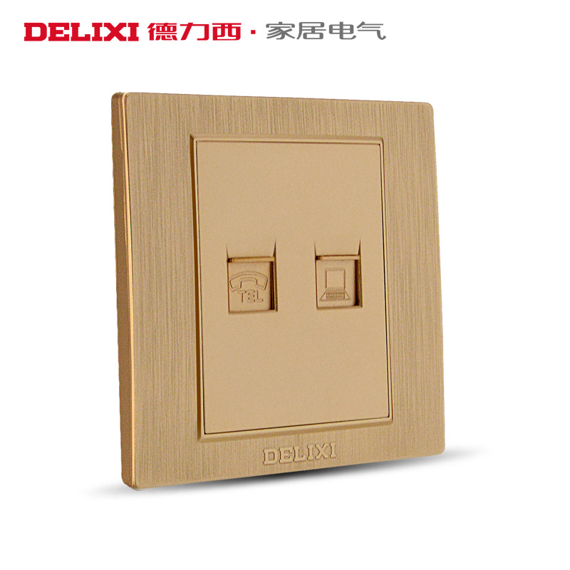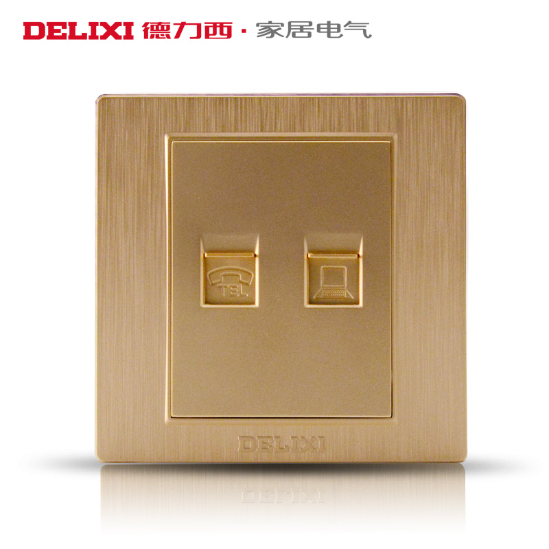 Deri West Switch Socket Champagne Gold Wire Drawing Panel Wall Switch Internet Socket Telephone Computer Socket