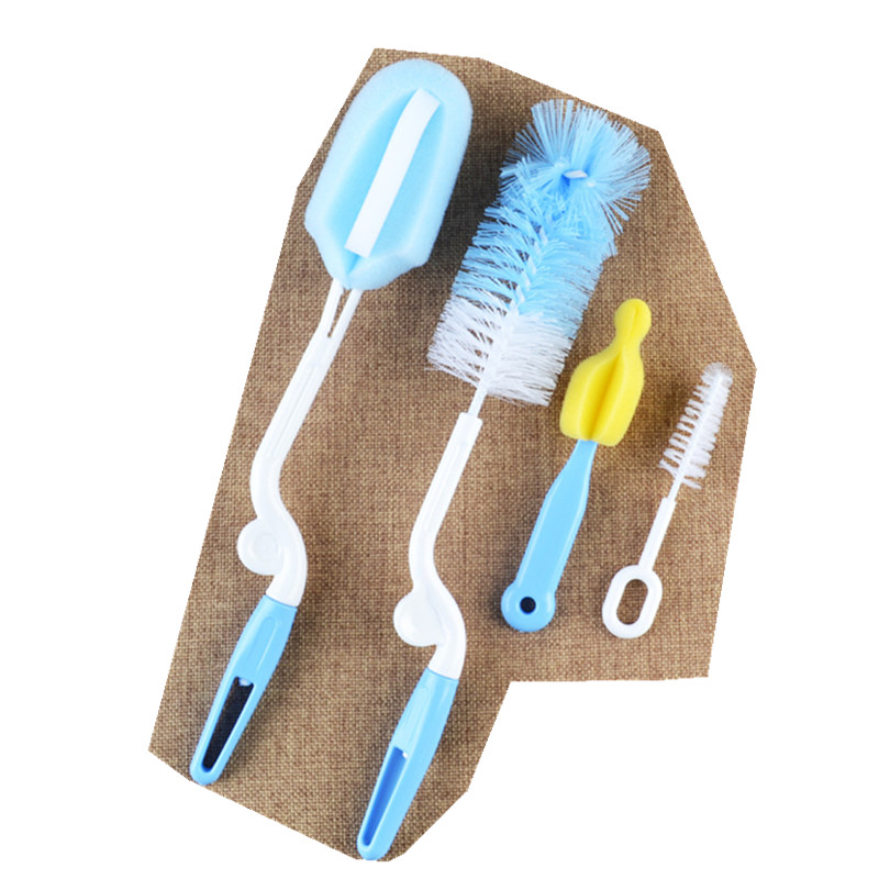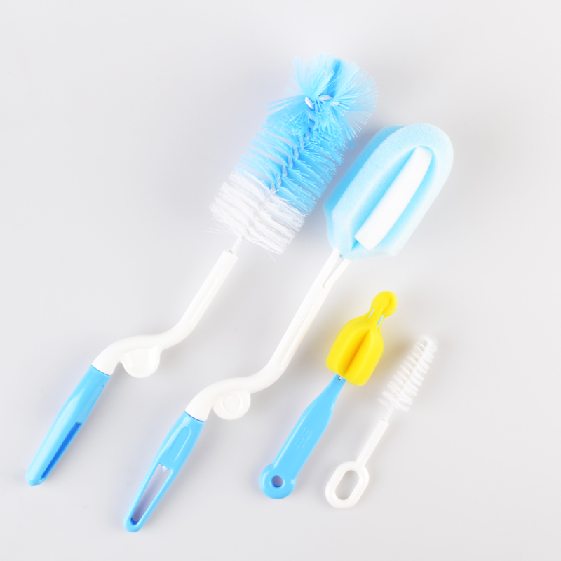 (5 9) Baby bottle brush nipple brush nylon sponge cleaning 4-piece set 360 degrees rotatable