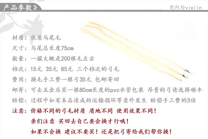 Violin bow hair Horsetail hair Natural Mongolian horsetail A pinch of about 180 bow bow hair replacement