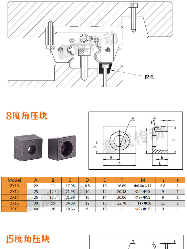 15 degrees Y4ZC4 linear guide press block mechanically machined fixed block slip-wire rail wedge block powder metallurgy inclined press plate