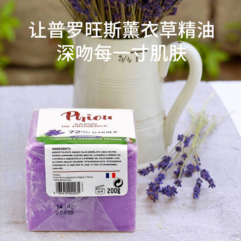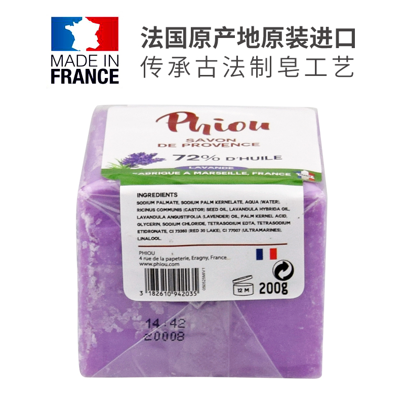French imports soap PHIOU Organic lavender essential oil Marseille soap wash face moisturizing bath soap 200g * 1