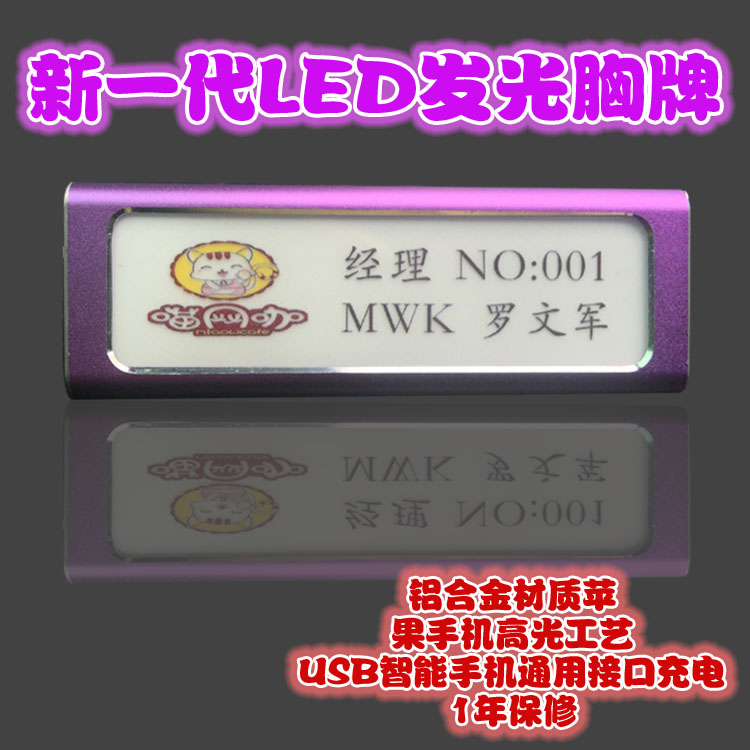 LED Chest Card Set Up Bar KTV Hotel Shine Chest Card Custom Electronic Work Card Aluminum Alloy Breast Plate Pin