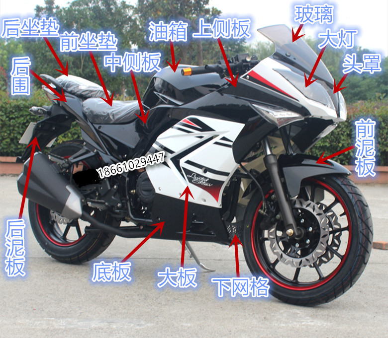 Glass hood Small cover Hood Upper side plate Large plate Base plate Middle side plate footrest Rear circumference instrument cover Hood grid Lower grid Rear mud plate Rear inner mud plate connecting cover Living room light Front facing light Taillight rear turn signal mirror Front mud plate