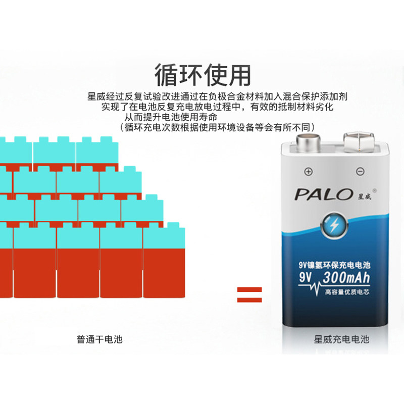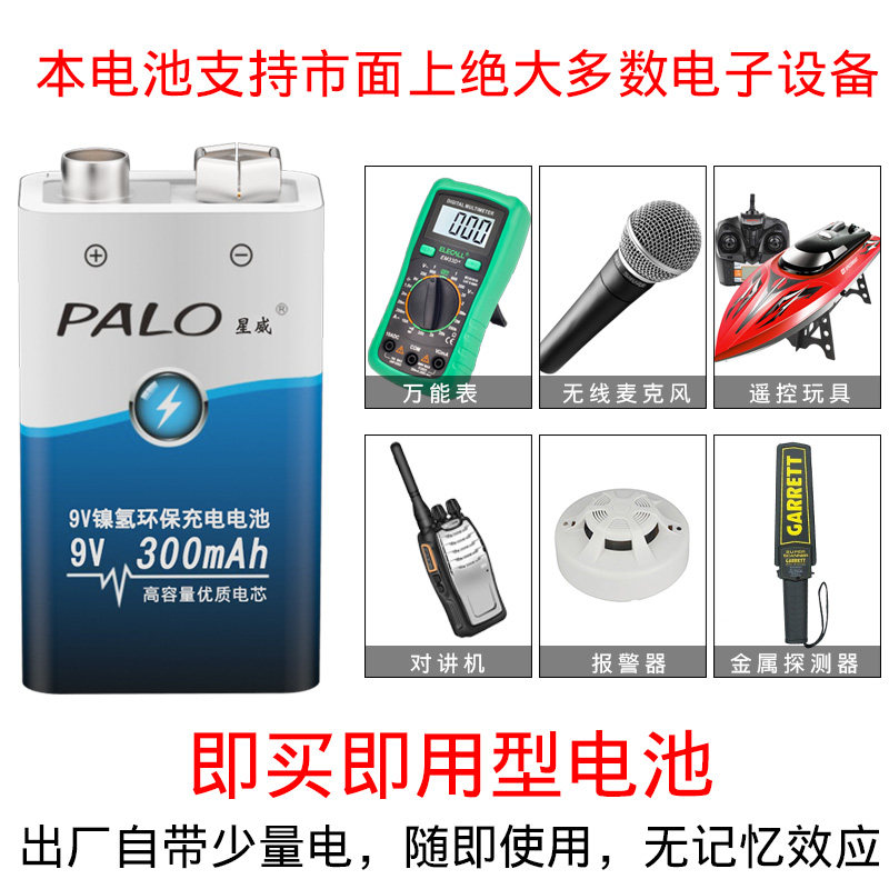 1 x 9V-300 mAh (NiMH battery) 2 x 9V-300 mAh(NiMH battery) 1 x 9V-500 mAh Lithium battery (Lithium battery) 2 x 9V500
