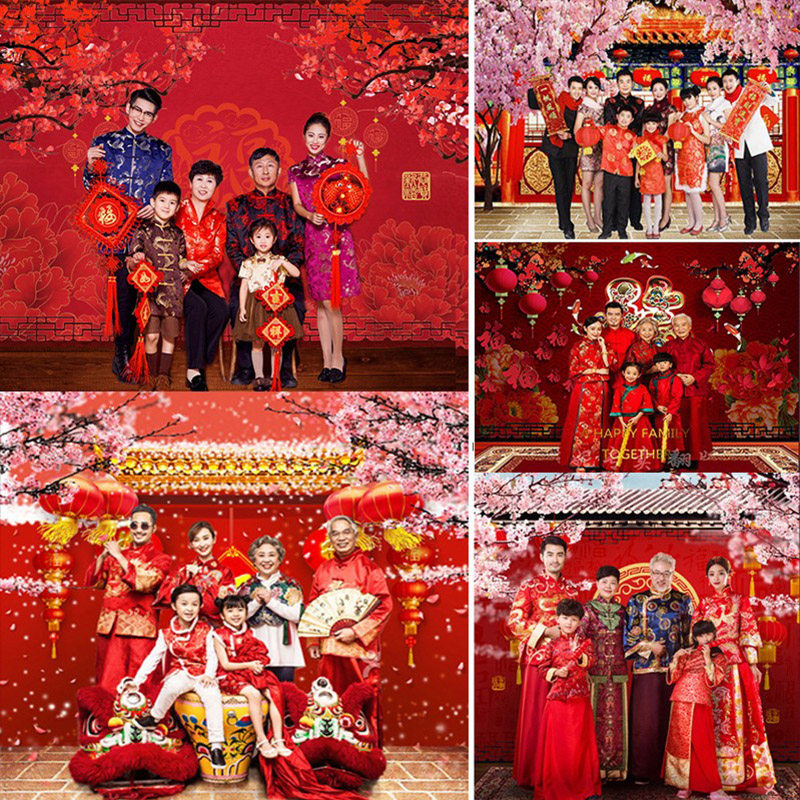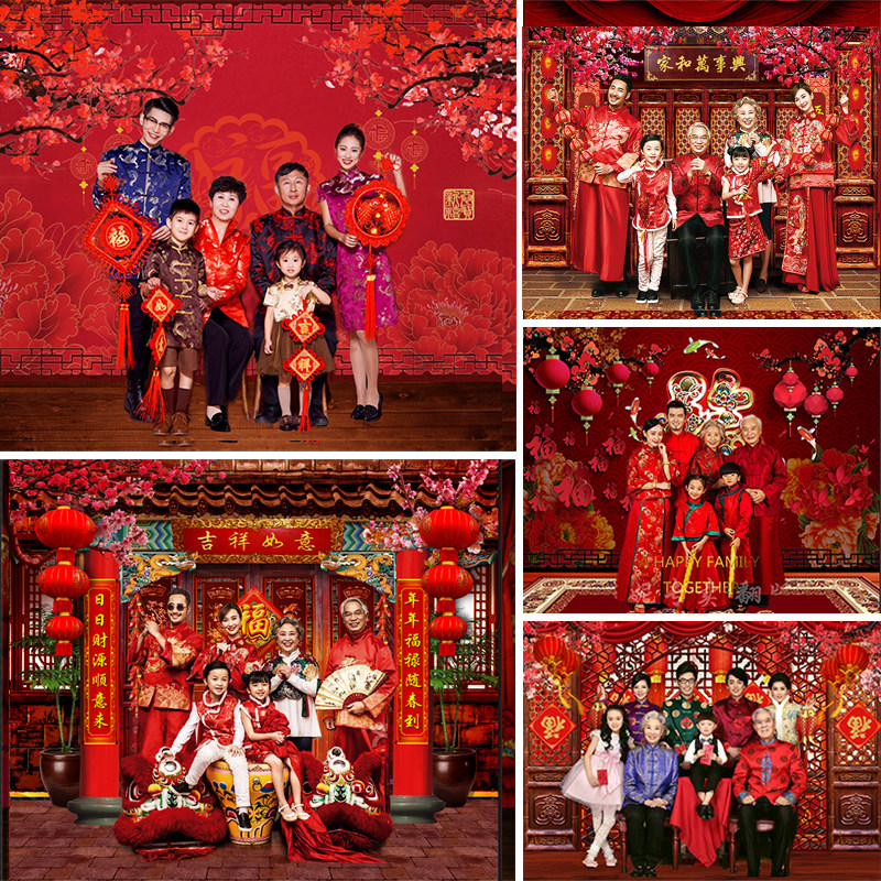 Spring Festival Happy New Year's Day Red Ancient Clothing Ancient Wind China Wind Live Photo Gallery Photography Full Family Fortune Background Cloth paper