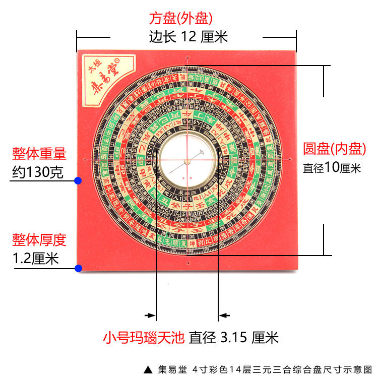 Jiyitang brand 4-inch three-yuan three-in-one Feng Shui compass 4-inch small exploration mountain integrated compass plate Agate needle