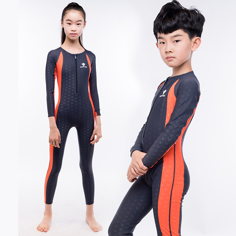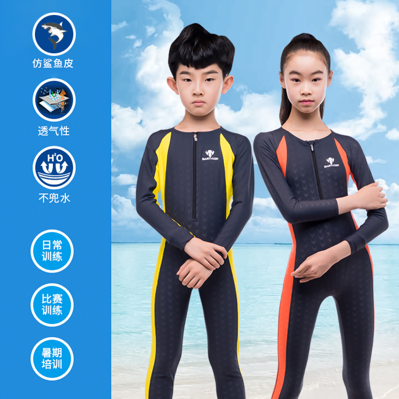 Long sleeve trousers children's swimsuit sunscreen warm quick-drying shark skin full body one-piece swimsuit professional competition for boys and girls