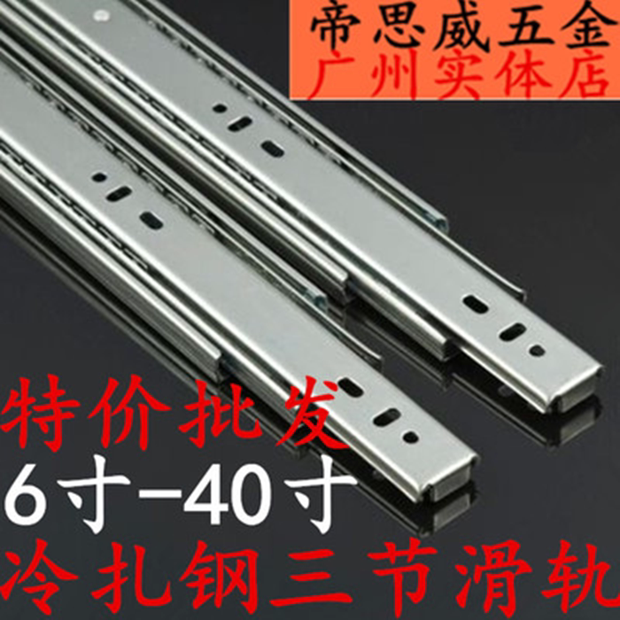 Di Siwei hardware stainless steel silent three-section drawer track slide Ball three-fold guide rail slide 2pcs