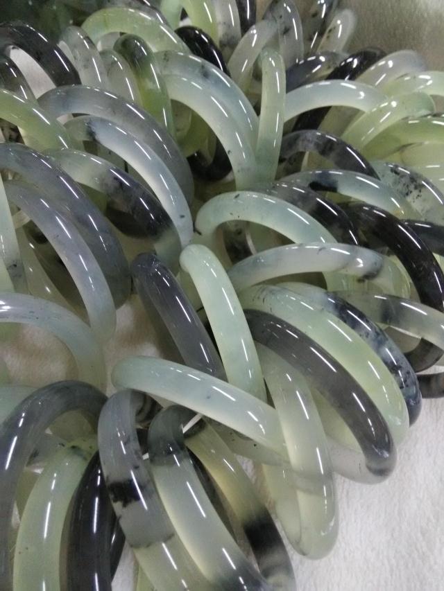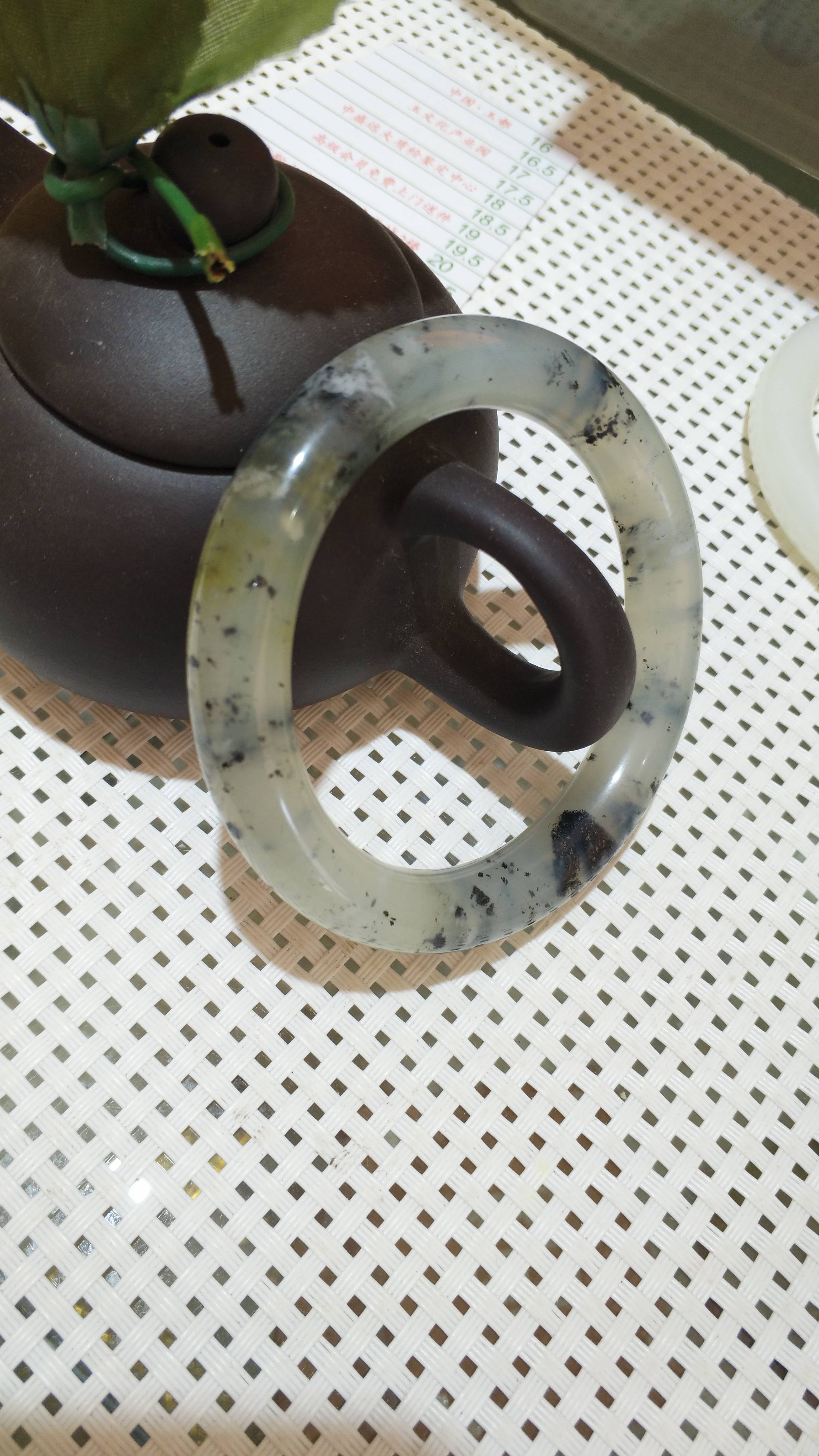 Natural Xiu jade round bar bracelet with rock jade water ink floating fine bracelet origin