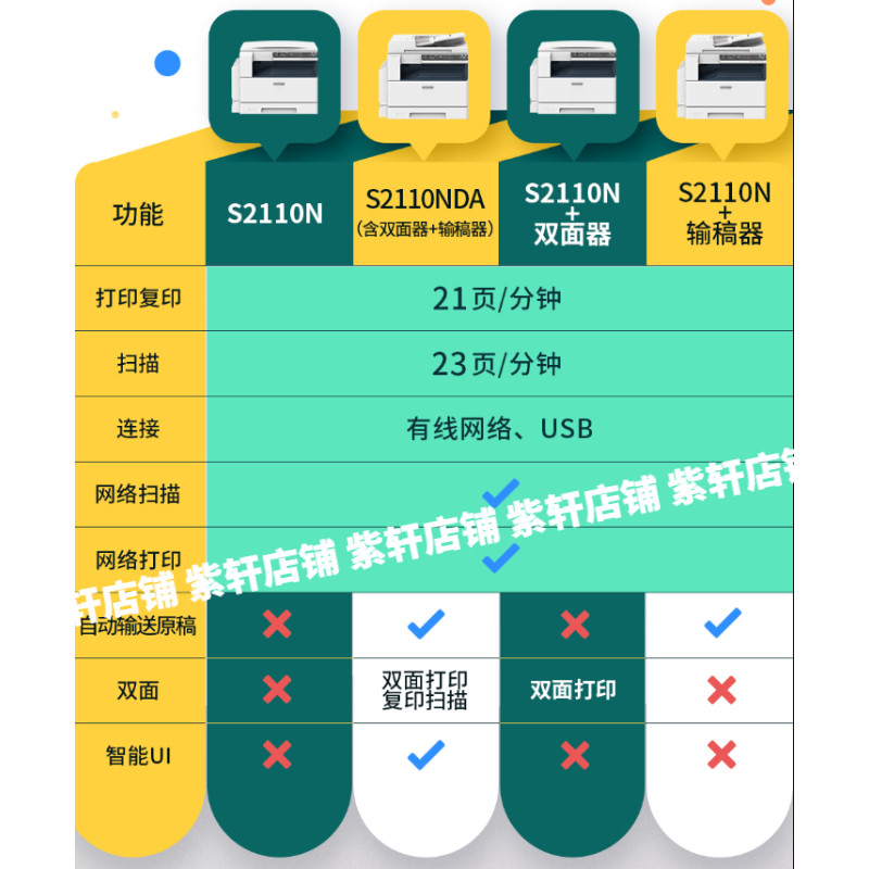 2110N Duplex print Single-sided copy scan Full record 2110 two-tray 2110N single-sided print copy scan 2110NDA Duplex print copy scan 2520NDA Dual-sided print copy scan