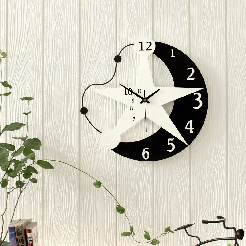 Personality creative moon watch Modern simple living room wall clock Art clock wall hanging bedroom fashion household hanging watch