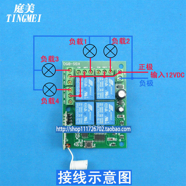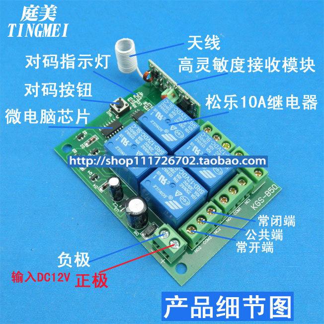 Motor Roll Gate Curtain Lamp Wireless Remote Control Switch Module Receiver 12V Four-way Learning Type 4 Road