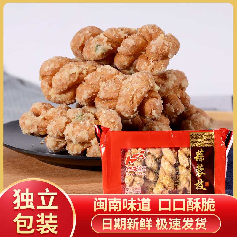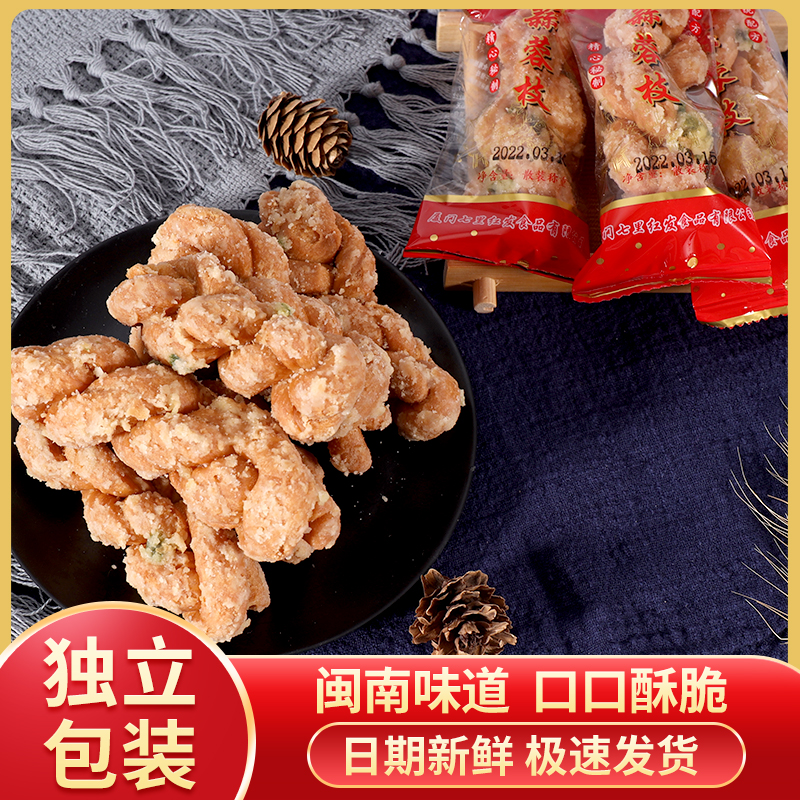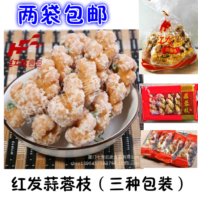 2 Bags of Fujian Xiamen Minnan Special production of red hair garlic hibiscus Branches Handmade Onion Fragrant Hemp Flower Oil Zanzi Traditional Snack