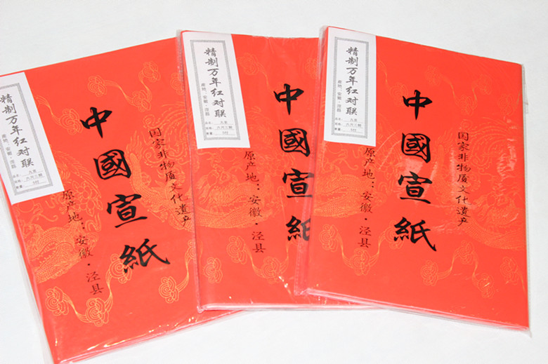 Anhui Handmade Xuan Paper Couplets Six Feet Three Open Nine Years Red Xuan Paper Couplets to Paper 32 * 180 Manufacturer Direct