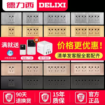 Delixi 118 type switch socket household Black gray wall 20 nine holes 9 holes 12 holes 12 holes panel porous
