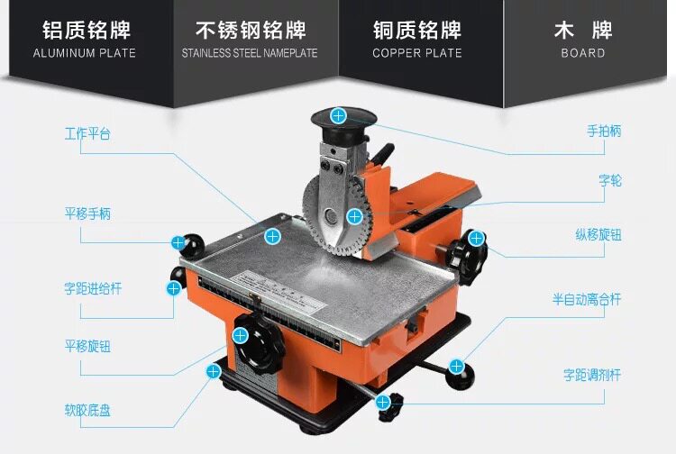 Nameplate Manual Engraving Machine Aluminum Plate Press Typewriter Steel Print Machine Small Semiautomatic Metal Signage Print Machine Lettering