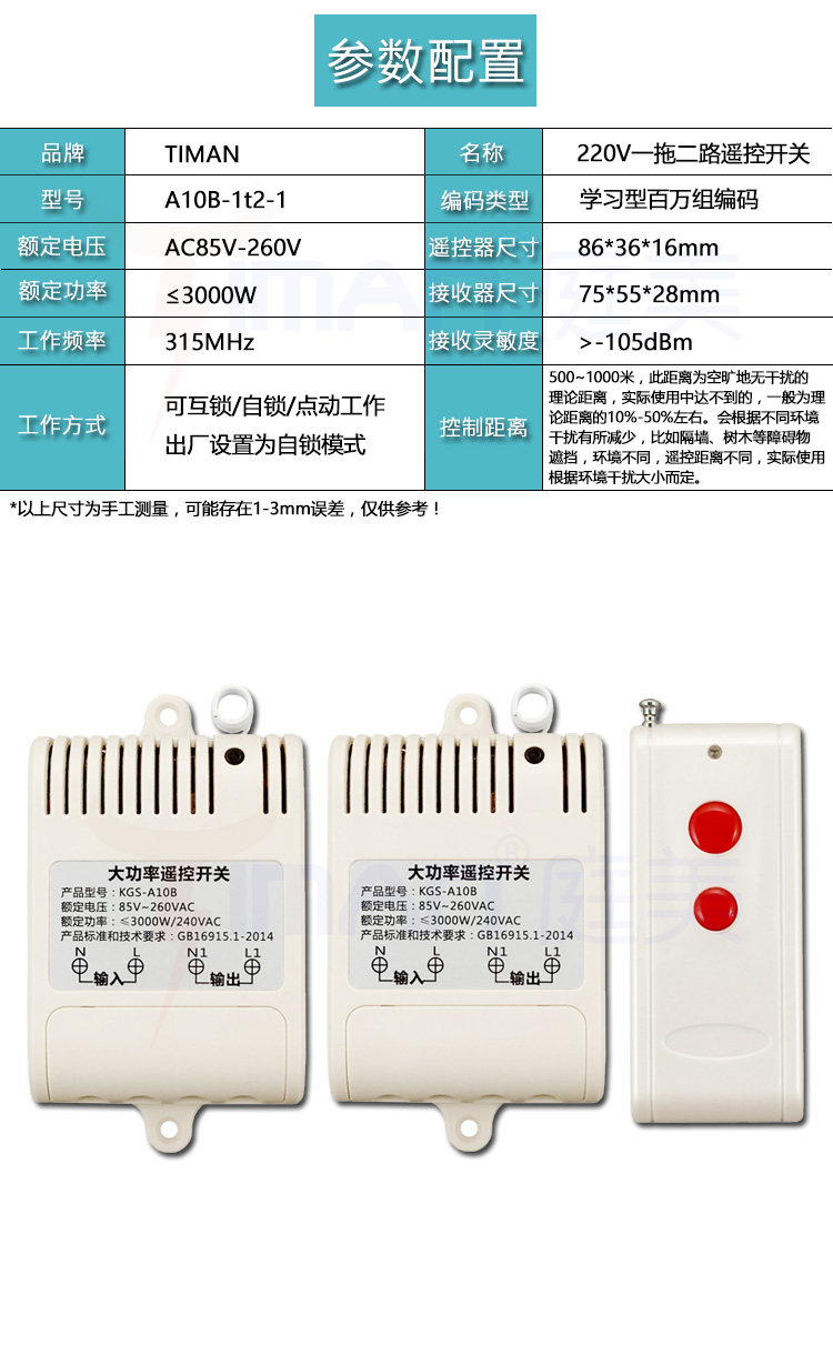 High power industrial electrical load wireless remote control switch module receiver 220V one to two two-way learning type