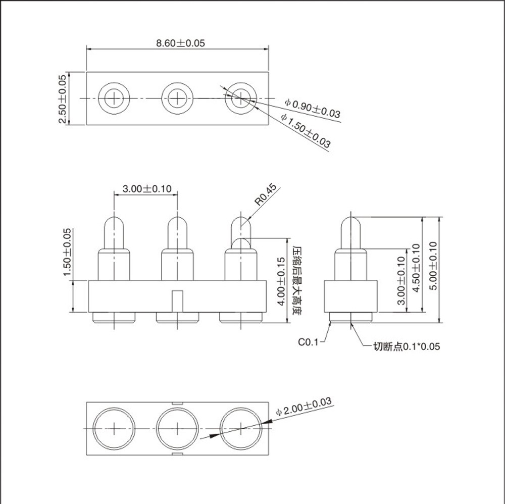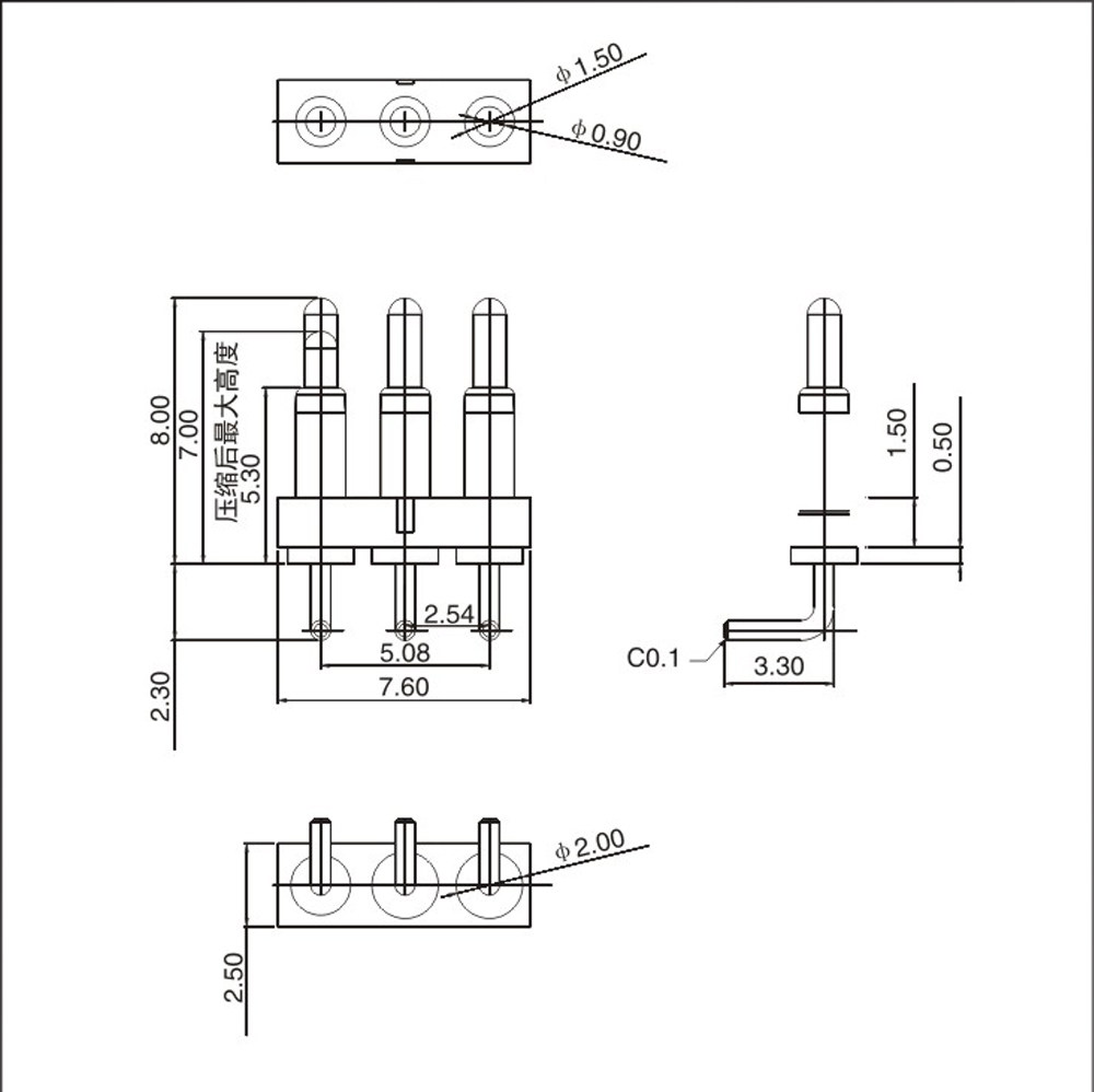 Probe POGOPPIN Bending Current Pin Elastic Antenna Thimble Pin 3PIN Pitch 3.0 Connector Spring Pin