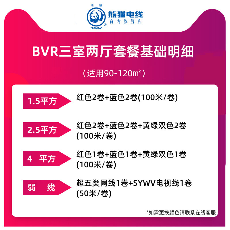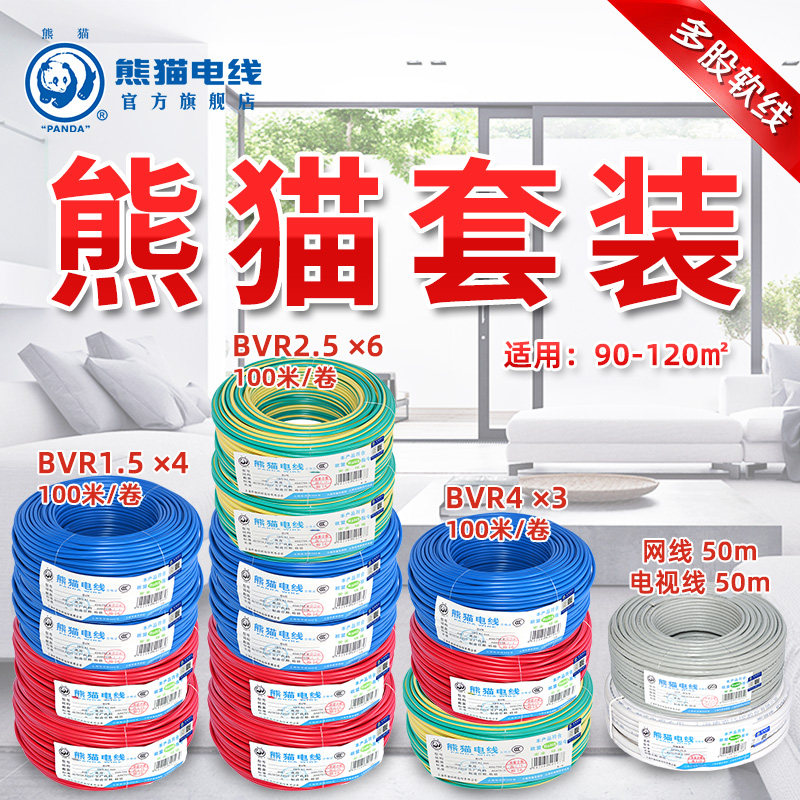 Panda wire three-room two-hall home improvement set use area 90-120 flat BVR multi-strand soft copper core wire