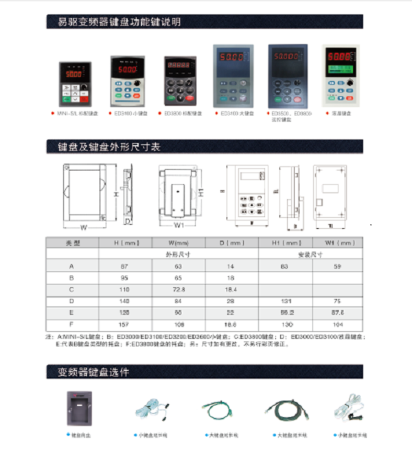 Easy drive inverter ED3100 CV3100 panel Operation panel Control panel Display panel