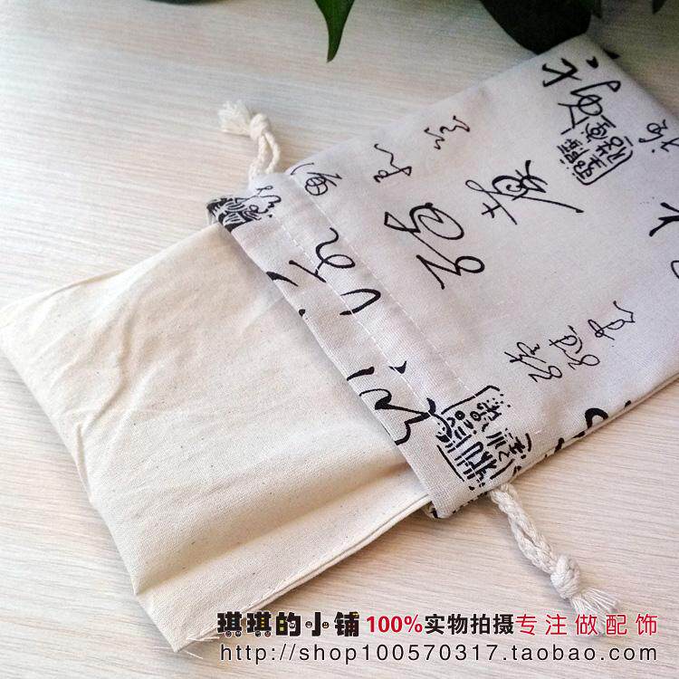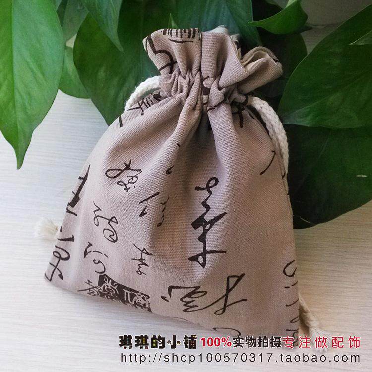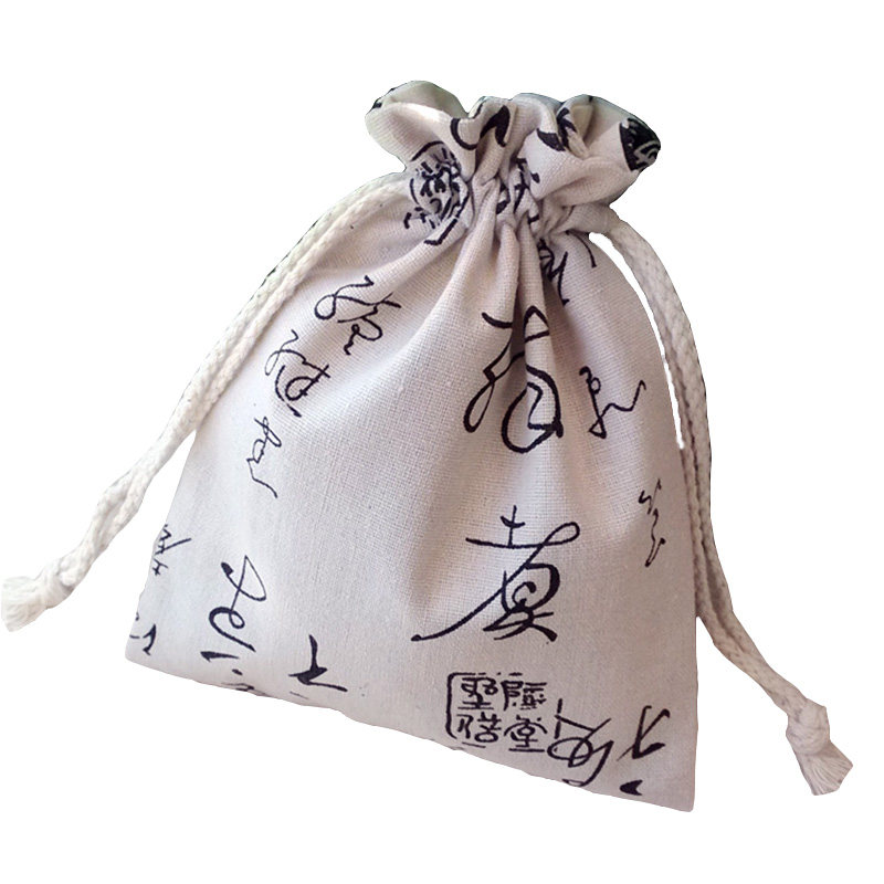 New Product Creative Calligraphy Seal Linen Text Playing Bag Buddha Beads Bracelets Collection Bag Beam Mouth Storage Bag Gift Bag