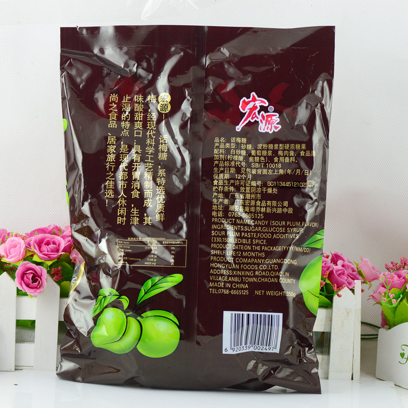 Guangdong Terfic Hongyuan Plum Sugar 350g Sour Sweet Hard Sugar Wedding Celebration and Candy Office Hospitality for Leisure Snack Foods