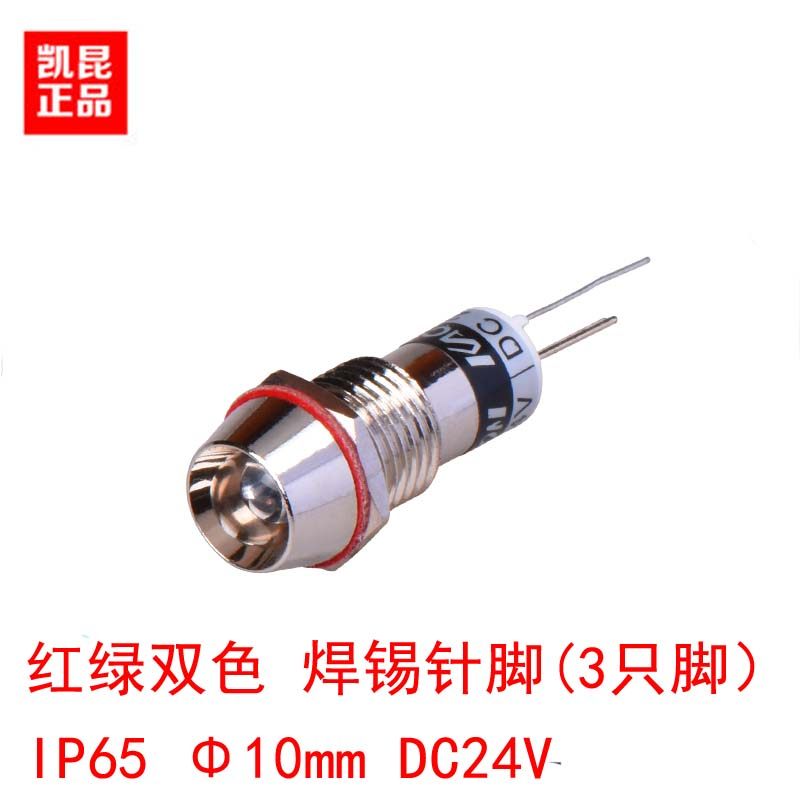 KACON Kaikun 10mm copper shell high-bright LED indicator light KL1024RG red and green two-color 24V