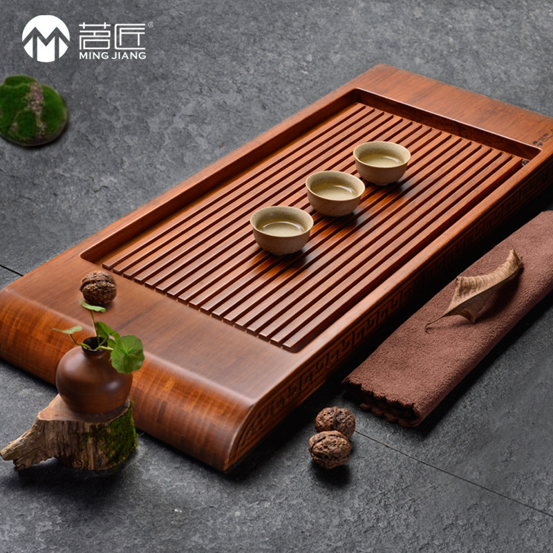 Mingcraftsman tea set Wujinshi heavy bamboo tea tray Tea Sea bamboo Japanese drainage tea table extra large whole tea tray