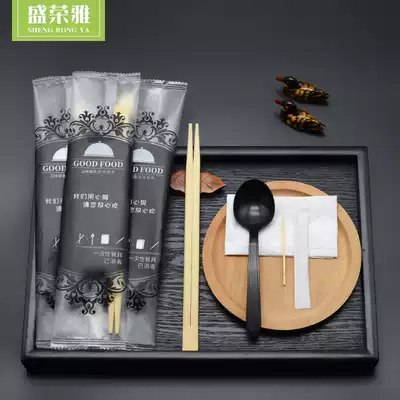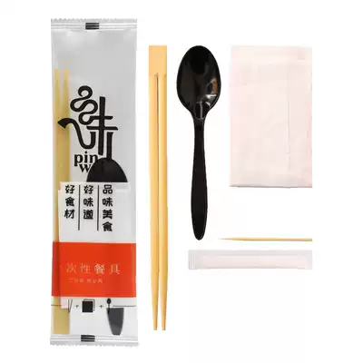 Frosted film taste red (chopsticks paper towel toothpick D Black Spoon) 200 sets of smiley face version three in one (chopsticks paper towel toothpick) 200 sets of each bite-four sets-D Black Spoon-2