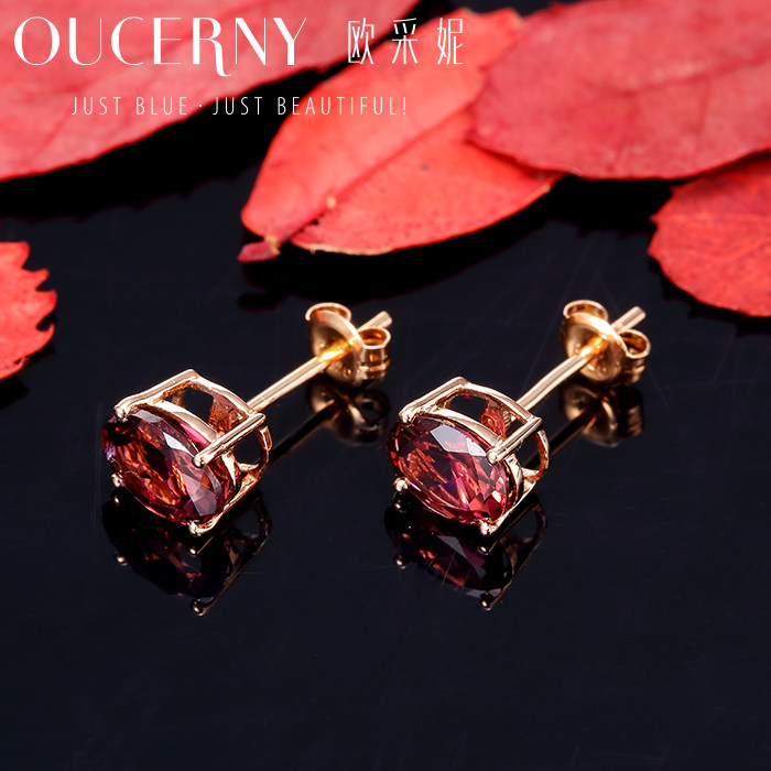 Och Ni jewelry tourmaline earrings inlaid with ruby earrings 18K rose gold tourmaline earrings women