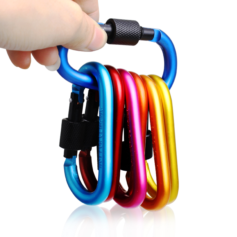 Outdoor multi-function carabiner hook fast hanging D-type 8CM aluminum alloy keychain backpack water bottle hanging buckle Men's safety buckle