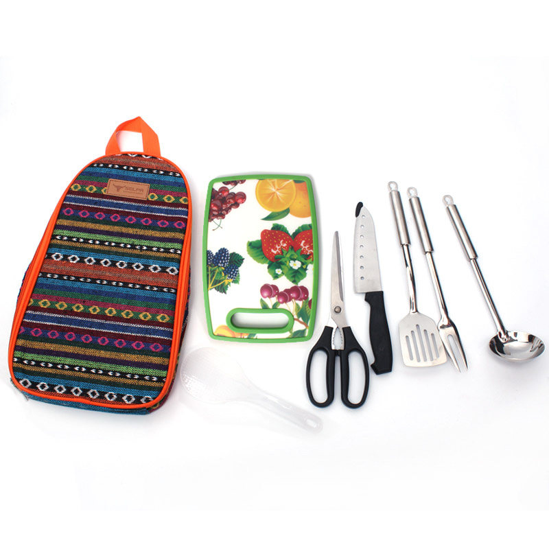 Selpa Korea outdoor cookware set Camping kitchenware Portable stainless steel self-driving barbecue tools 7-piece set