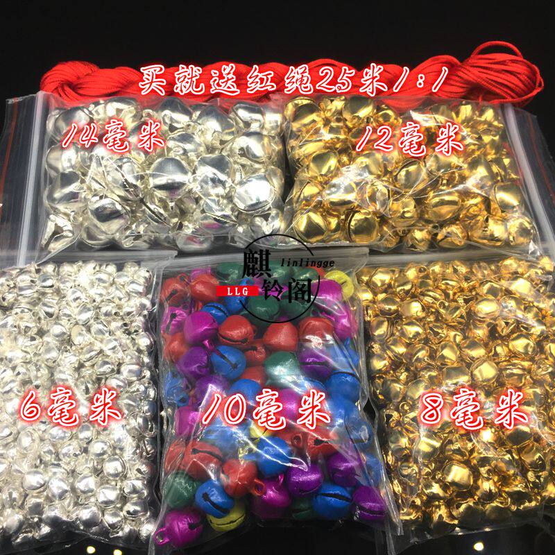 Iron bell silver 14 mm 50 red rope iron bell color 12 mm 70 red rope iron bell gold 8 mm 200 red rope iron bell gold 14 mm 50 red rope iron