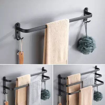 Punch-free space aluminum towel rack towel bar toilet single pole powder room black nail-free three-layer bathroom pendant