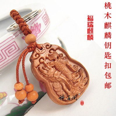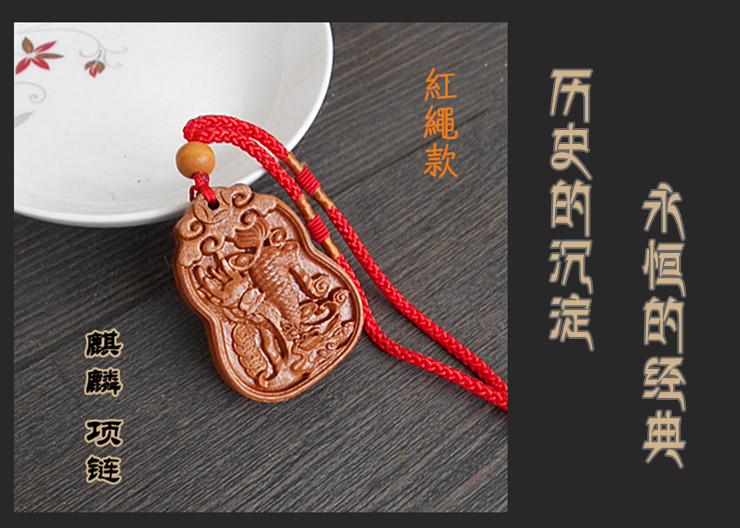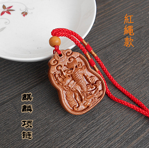 Unicorn pendant men's and women's peach wood necklace safe pendant wood carving wear lucky mascot creative gift