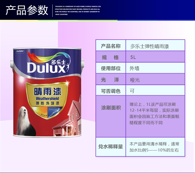 Dulux Dulux elastic rain paint 5L weather-resistant water-resistant exterior wall latex paint wall paint paint paint waterproof