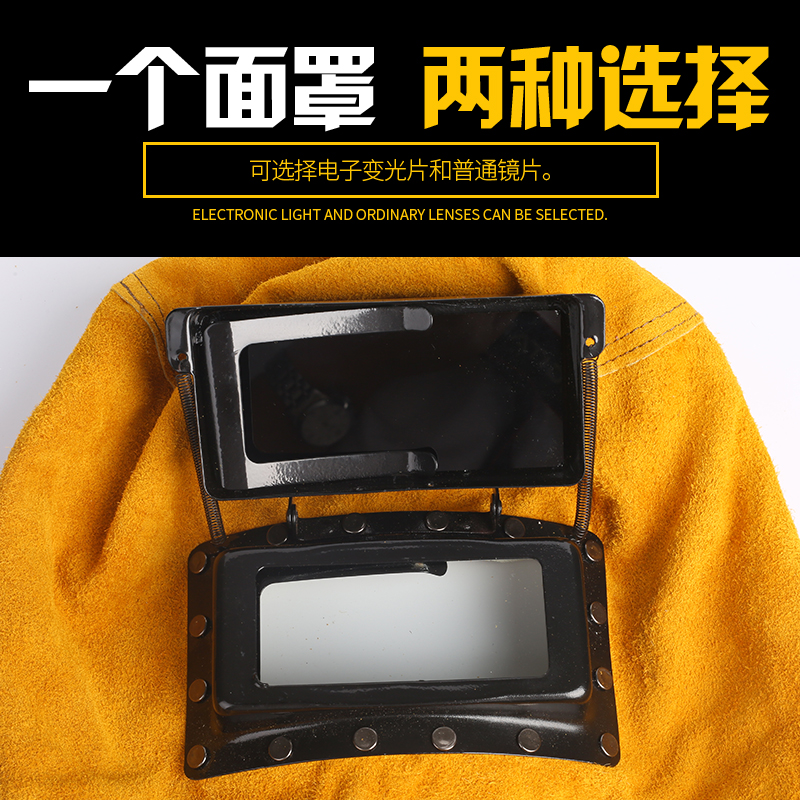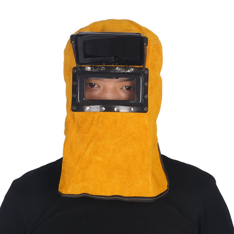Cowhide pullover welding mask argon arc welding head wearing type two-proof flip type light anti-baking face punching spot welding protection