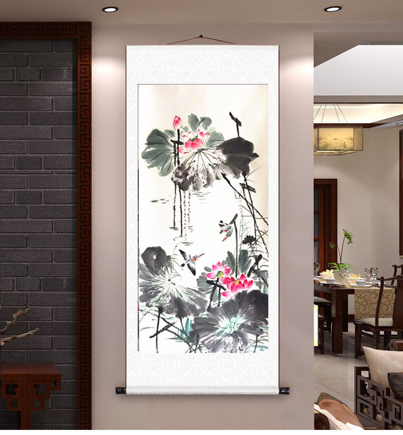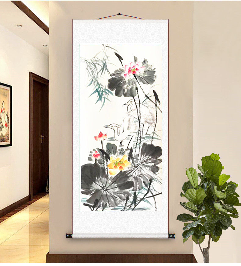 Lotus Lotus Chinese painting authentic Chinese living room decoration painting vertical calligraphy painting office calligraphy and painting framed painting celebrity calligraphy and painting