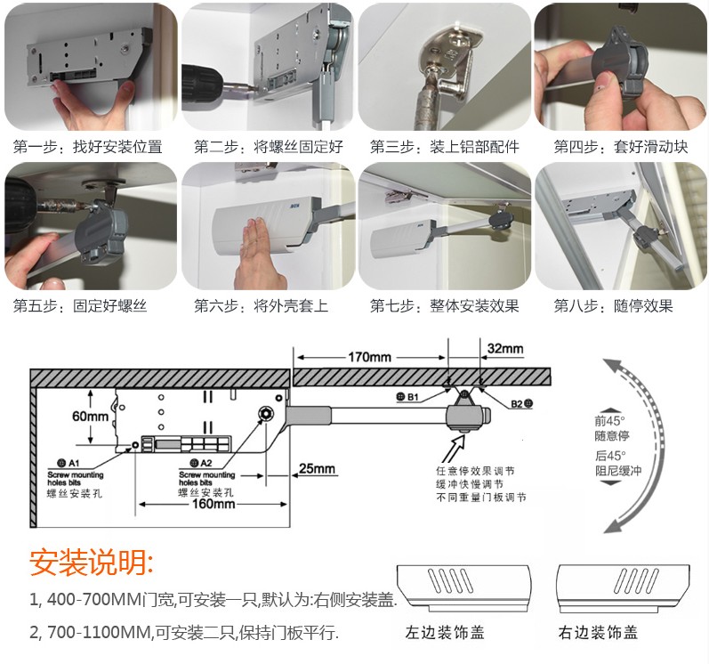 Hydraulic buffer support, stop at will, mechanical support, gas rod, stop at will, and turn the door on the whole cabinet