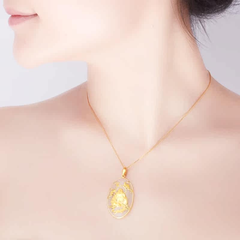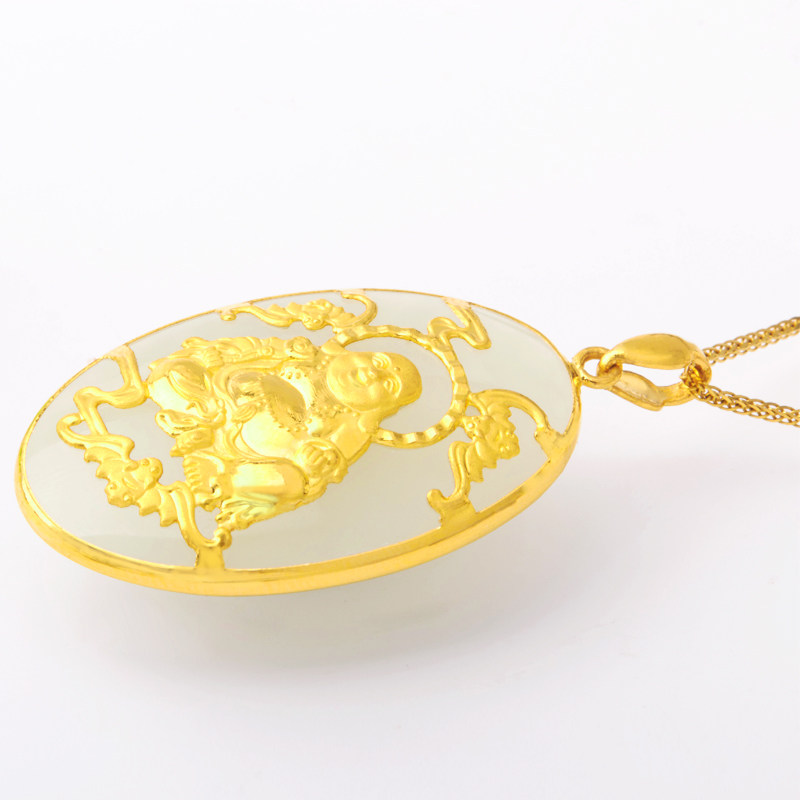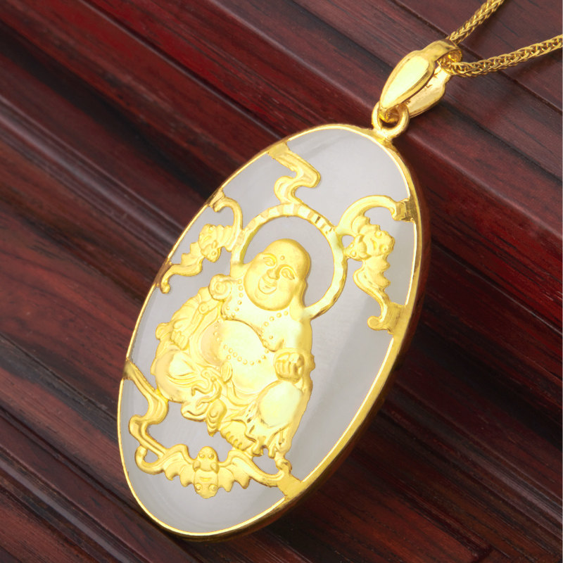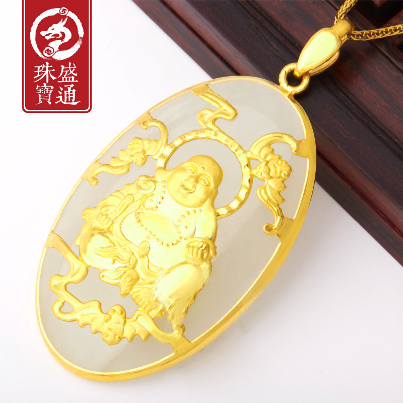 Sheng Tong Jewelry Gold Inlaid Jade Pendant Woman and Tian Bai Yufoot Golden Mall laughing Buddha Gong jade item pendant jade pendant