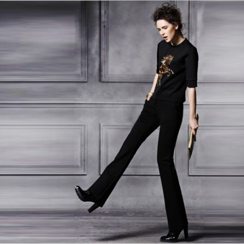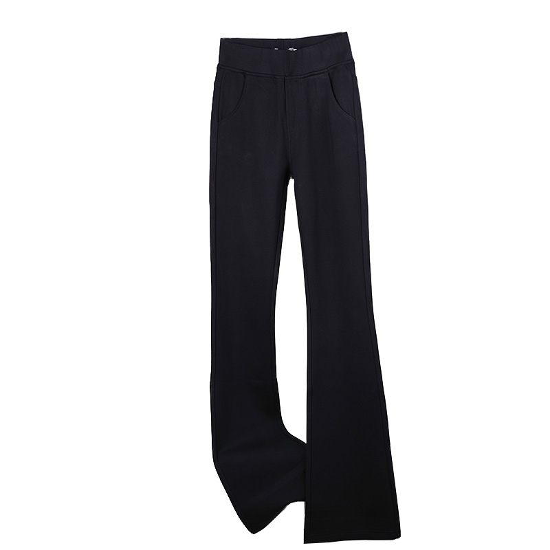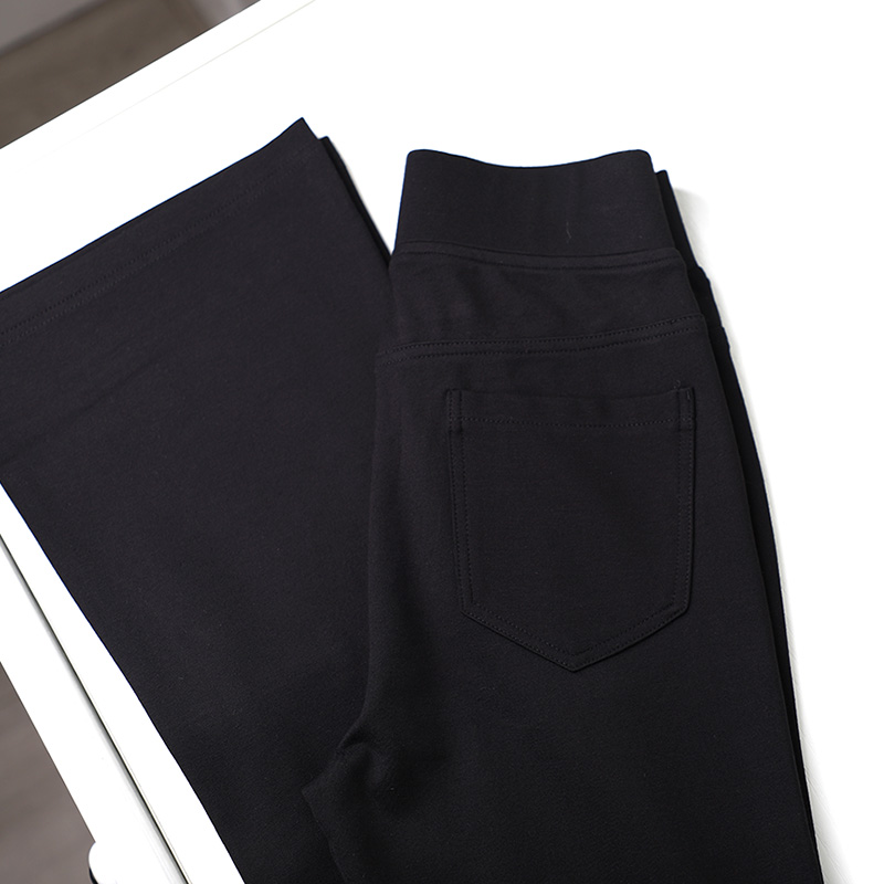 Self-kept cattle goods recommended high-waisted four-sided stretch wrapped body micro-flared pants flared trousers elastic waist thin black OL pants
