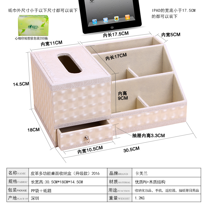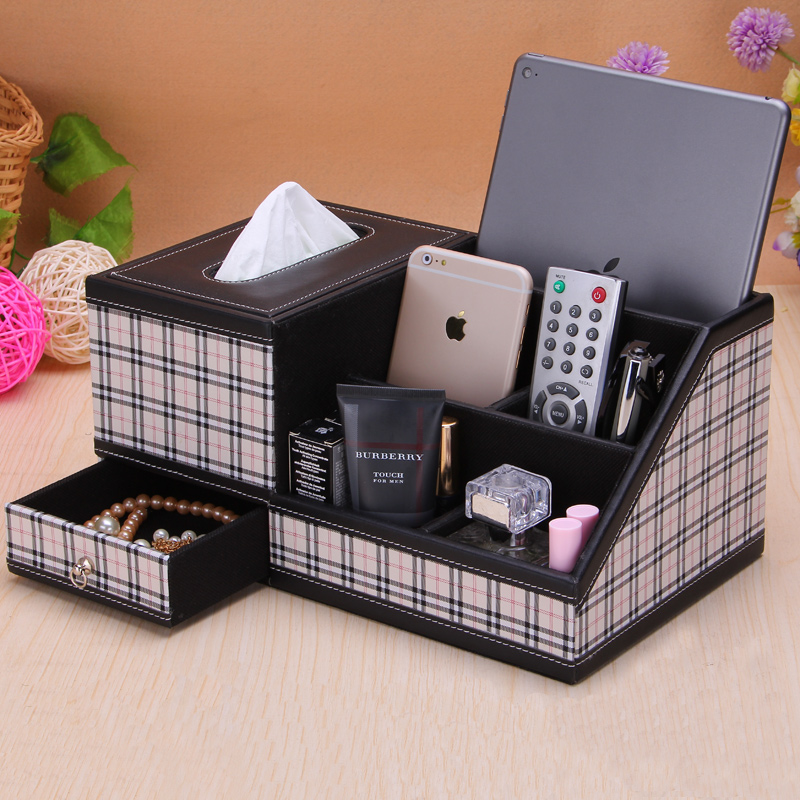 Leather tissue box Toilet paper box Multifunctional bedroom living room coffee table Desktop remote control storage box Creative European style