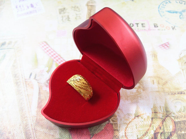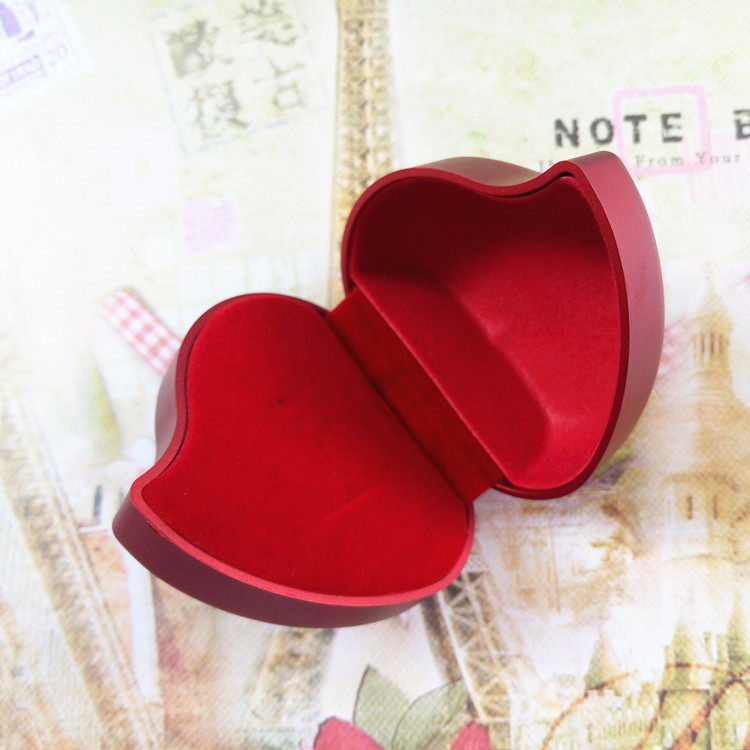 Manufacturer Direct Wine Red Plastic Yellow Gold Ring Case Heart-shaped Packaging First Accessories Box Jewelry Distribution Box