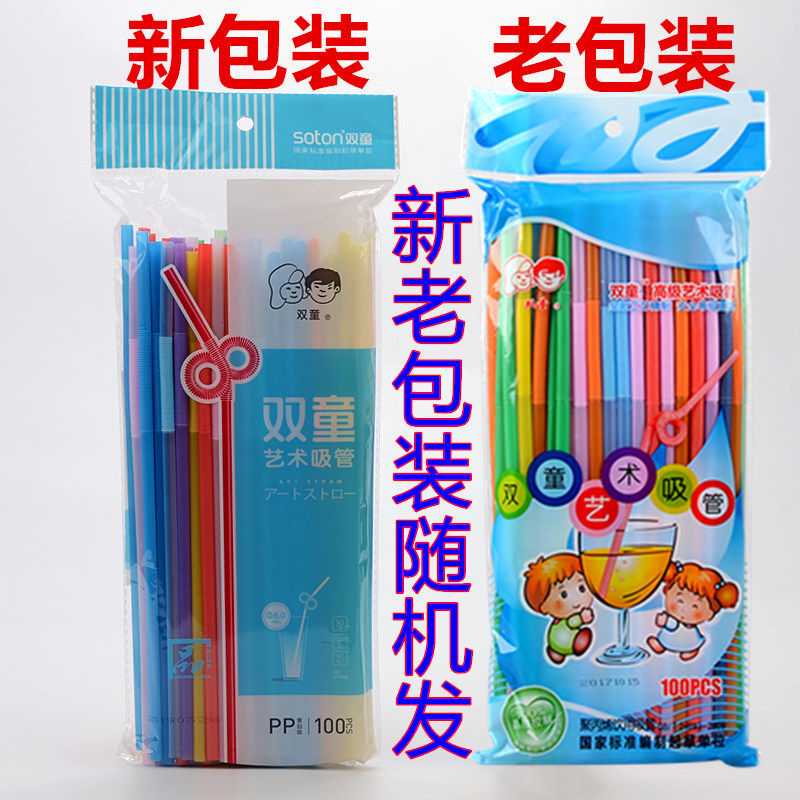 Disposable Straw Double Child Art Straws Beverage Straws Coke Straws Black Art Creative Styling 100