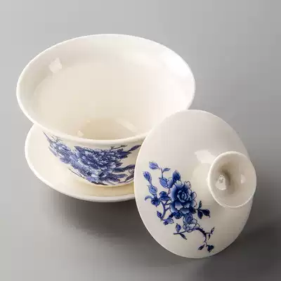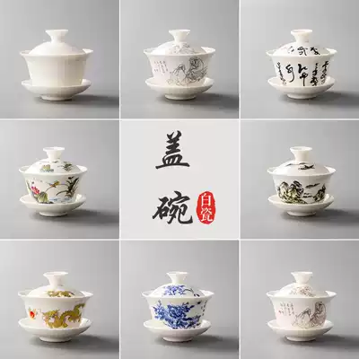 Landscape White Porcelain Cover Bowl Tang Poetry White Porcelain Cover Bowl Chinese White White Porcelain Cover Bowl Gold Tea Holy White Porcelain Cover Bowl Silver Tea Holy White Porcelain Cover Bowl Blue and White Porcelain Cover Bowl Shengshi Golden Dragon White Porcelain Cover Bowl (Pattern Random)