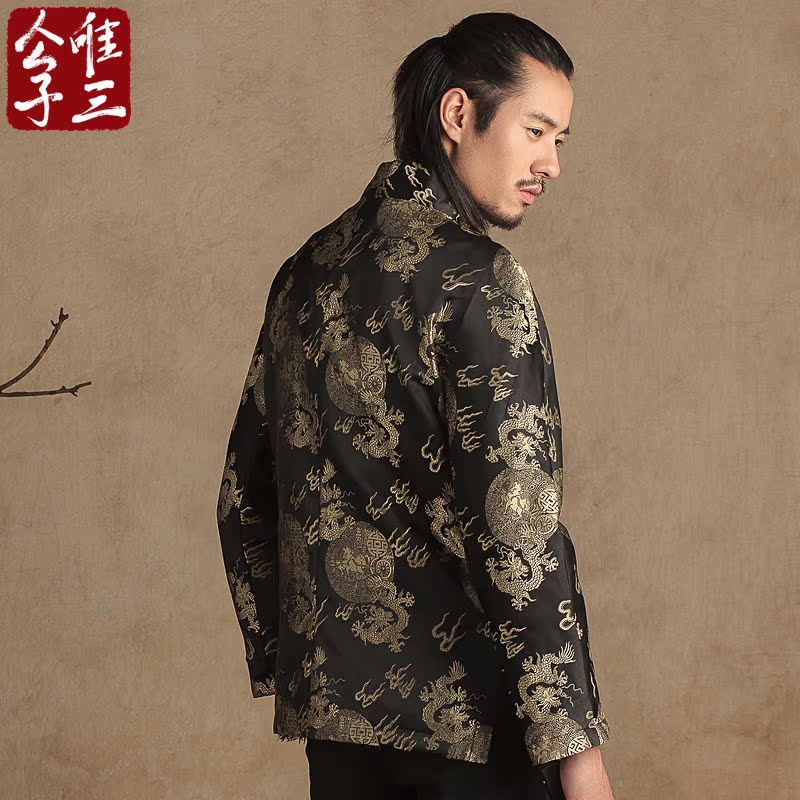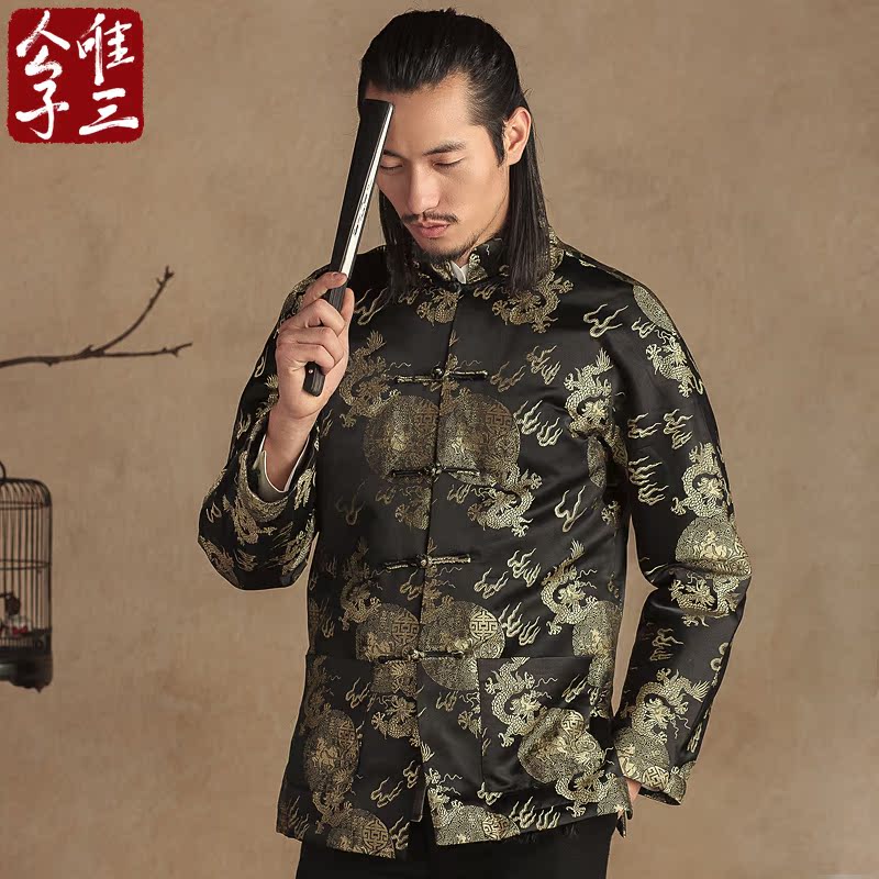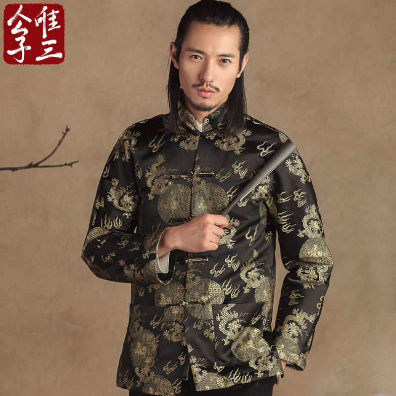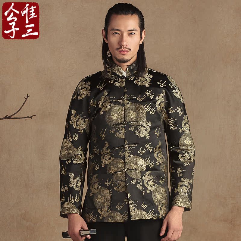 Only three Chinese style cotton clothes men's Chinese New Year Tang suit dress stand-up collar buckle ethnic Song brocade Chinese style cotton jacket men's autumn and winter