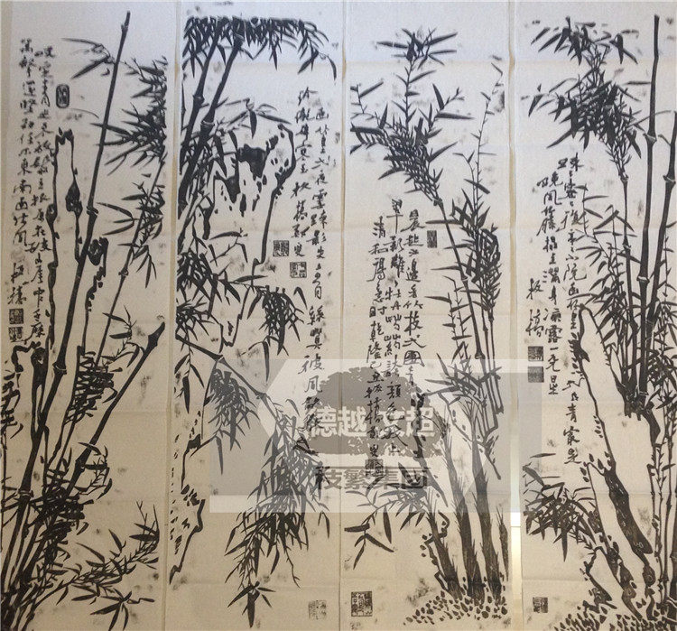 The inscription rubbings Zheng Xie Zheng Banqiao Banqiao Bamboo four screens four screens Yin Wen Sanbao study decoration copy